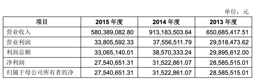 2013年、2014年和2015年,美联股份营收分别为6.51亿元、9.13亿元及5.8亿元;净利润分别为2858.6万元、3152.3万元及2754.1万元,可见其营收和净利润并不太稳定。