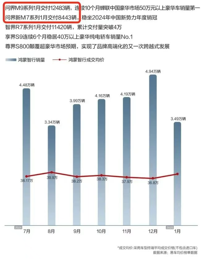 图/2024年7月-2025年1月鸿蒙智行交付情况 来源/互联网 新能源观截图