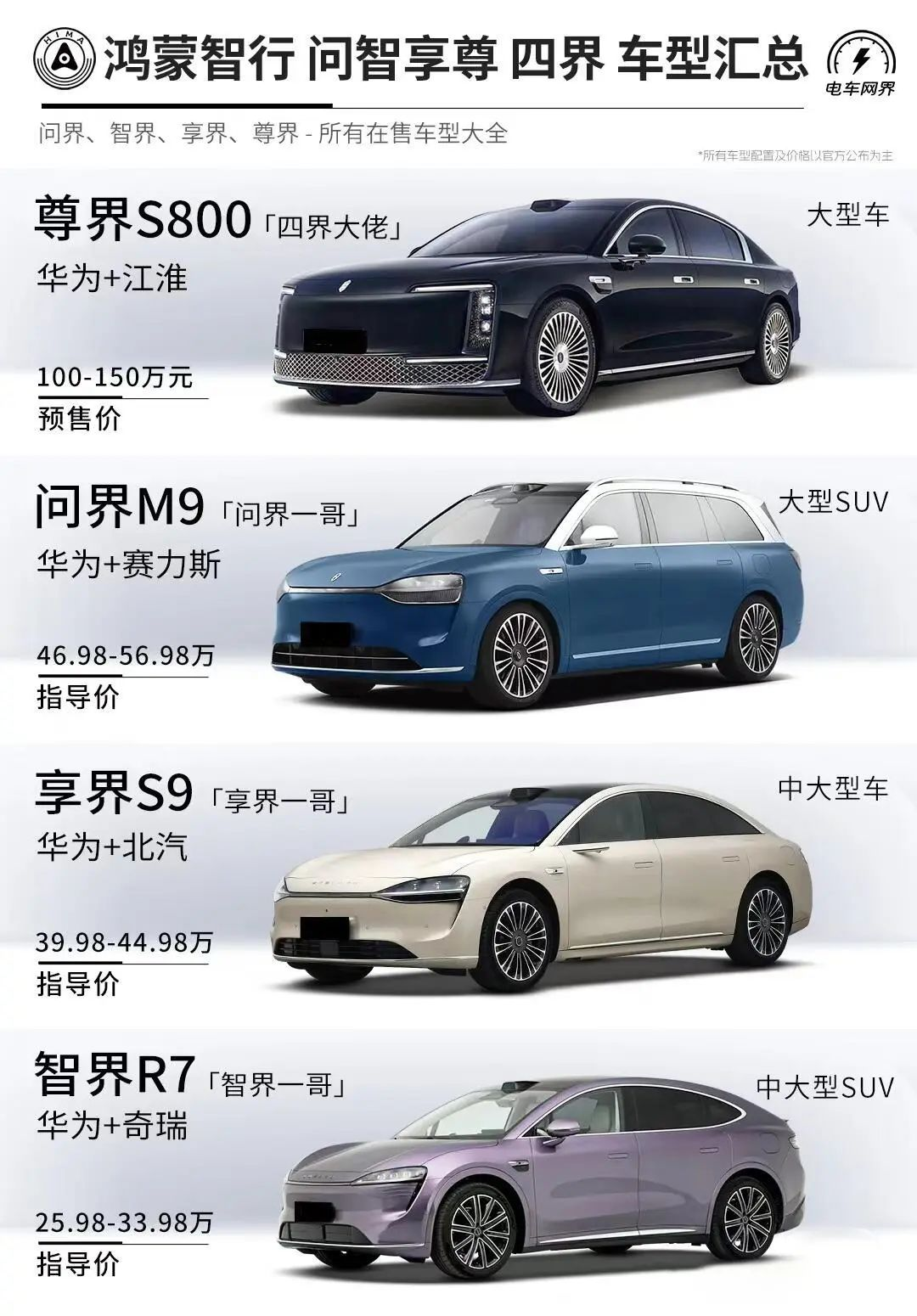 图/鸿蒙智行四界车型信息汇总 来源/电车网界 新能源观截图