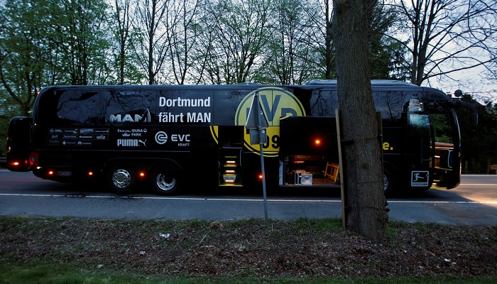 警方称,周二晚7点左右,球队大巴附近发生三次爆炸,大巴的玻璃被炸碎。英国《电讯报》援引德国安全部门消息人士的话称,爆炸是针对球队大巴的,袭击者使用了强力的爆炸装置。