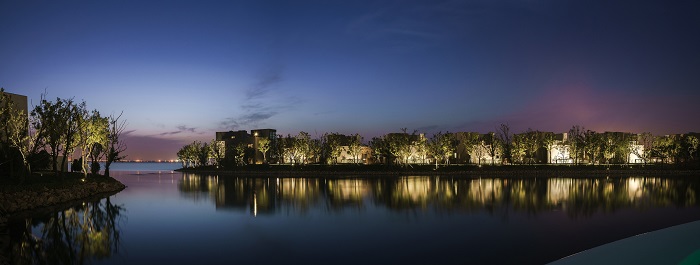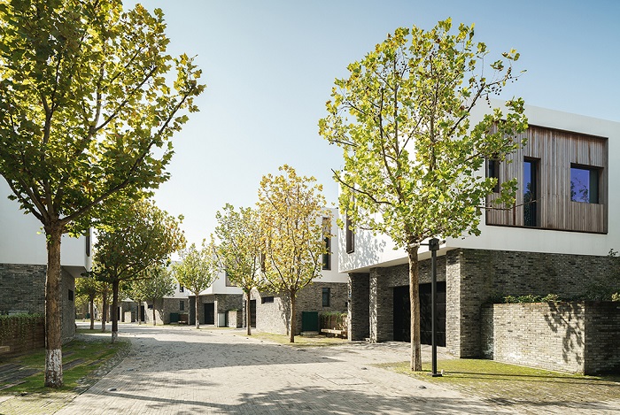101 栋独栋别墅临湖而建,面积从 600 平米到 1300 平米不等,是海派建筑和京派院落风格的结合。公共空间的设计采用了街区式的布局,能促进邻里间的沟通,打造出社区的感觉。