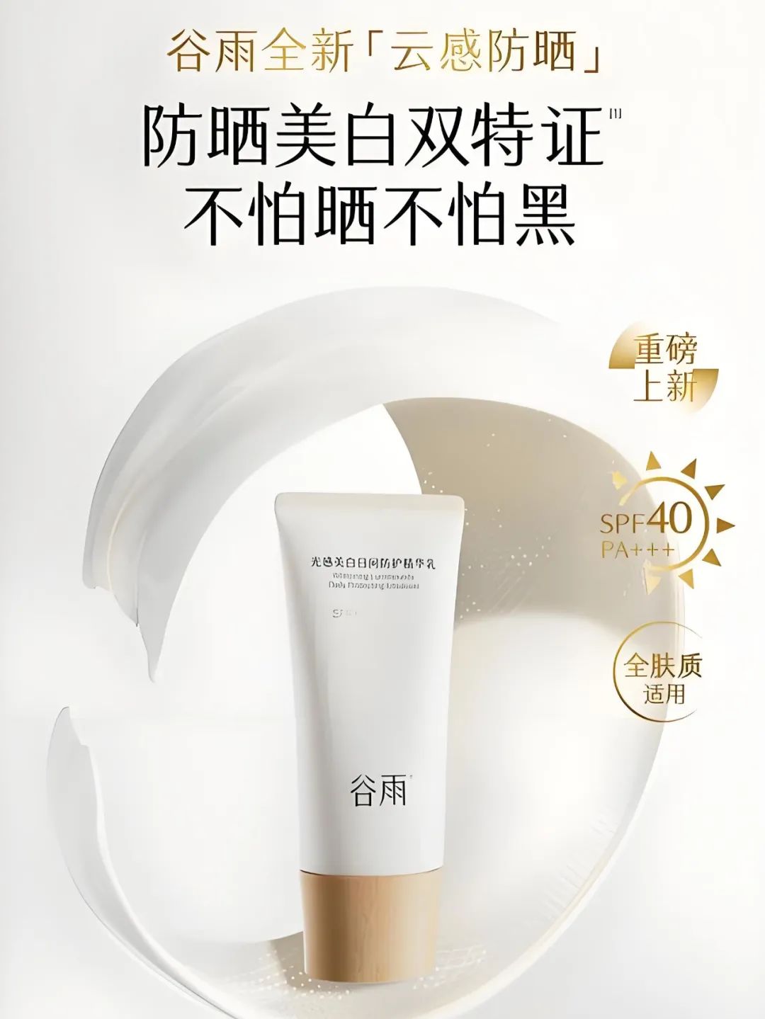 为兼顾高效防晒与安全性,以及进一步解决防晒肤感差、活性成分无法直达皮肤等问题,谷雨“云感防晒”以国人肤质研究为基础,自研Triple-shield 防晒体系,应用智慧仿生防晒专利技术,并复配了极光甘草成分。