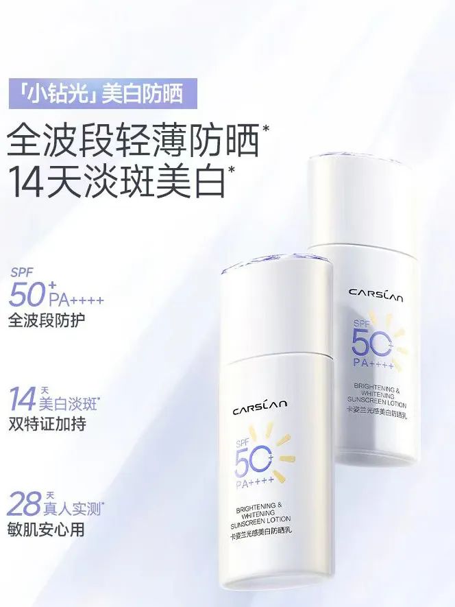 卡姿兰推出“小钻光”美白防晒霜;半亩花田推出全新“377钻光美白防晒”;谷雨推出更适合国人肤质的美白防晒产品“云感防晒”和“云柔防晒”;薇诺娜“修白防晒”则为敏感肌消费者增添了美白功效;柳丝木全新升级粉胶囊防晒2.0,美白力、防晒力、清爽力、养肤力全面进阶,4重美白力PRO 多链路御黑焕白......