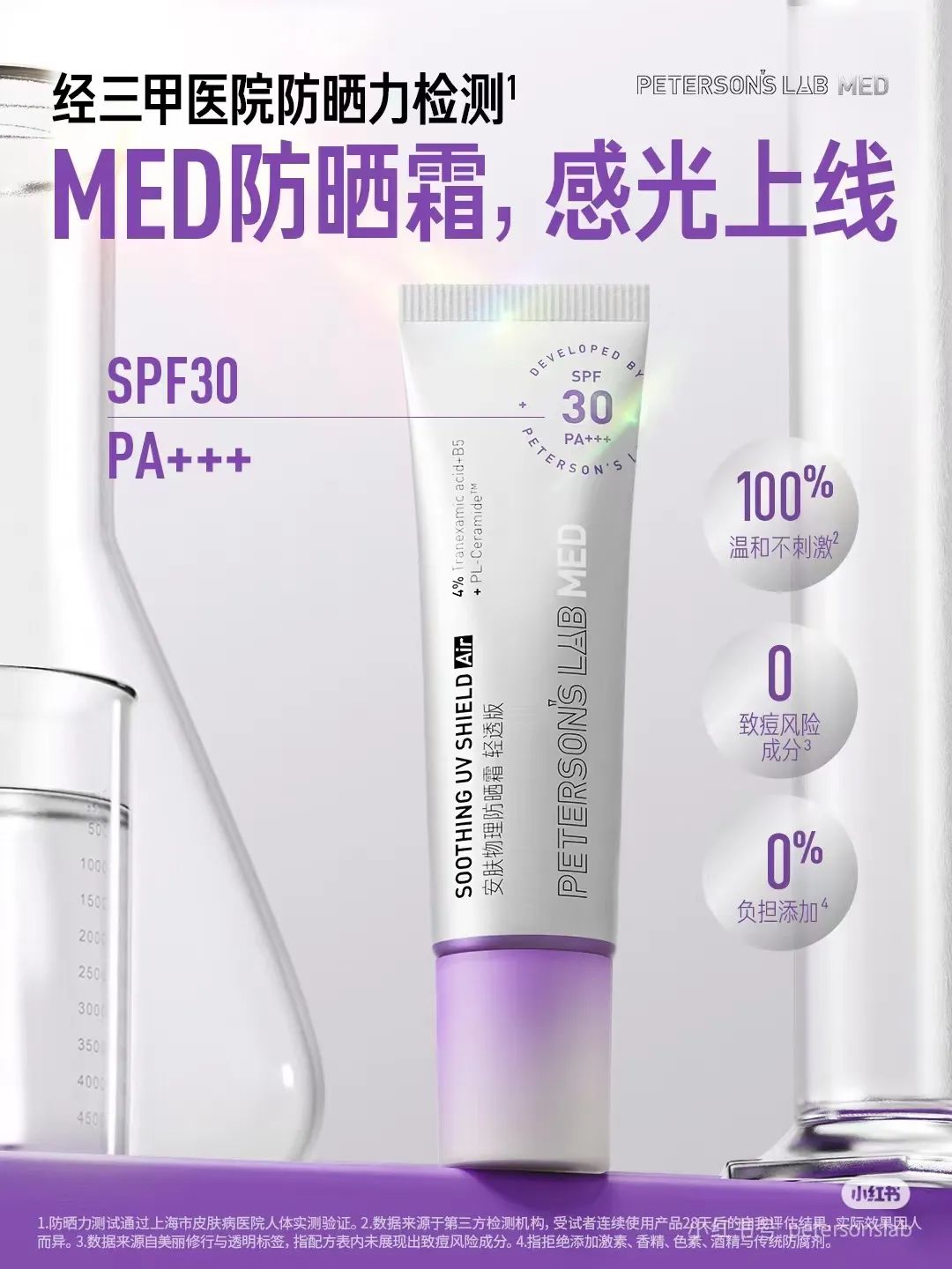 譬如,丸美小红盾防晒防晒乳集齐“物化生”3层防晒,12.5h抵御UVB、8倍抵抗UVA,后者剑指“防晒黑防光老”;薇诺娜清透防晒乳采用了“逆光转化技术”,全光谱防晒;敷尔佳水感清透防晒乳用6重防晒力全波段防护,抵御光损伤;毕生之研MED防晒霜,也提出了“防红防暗防光损”。