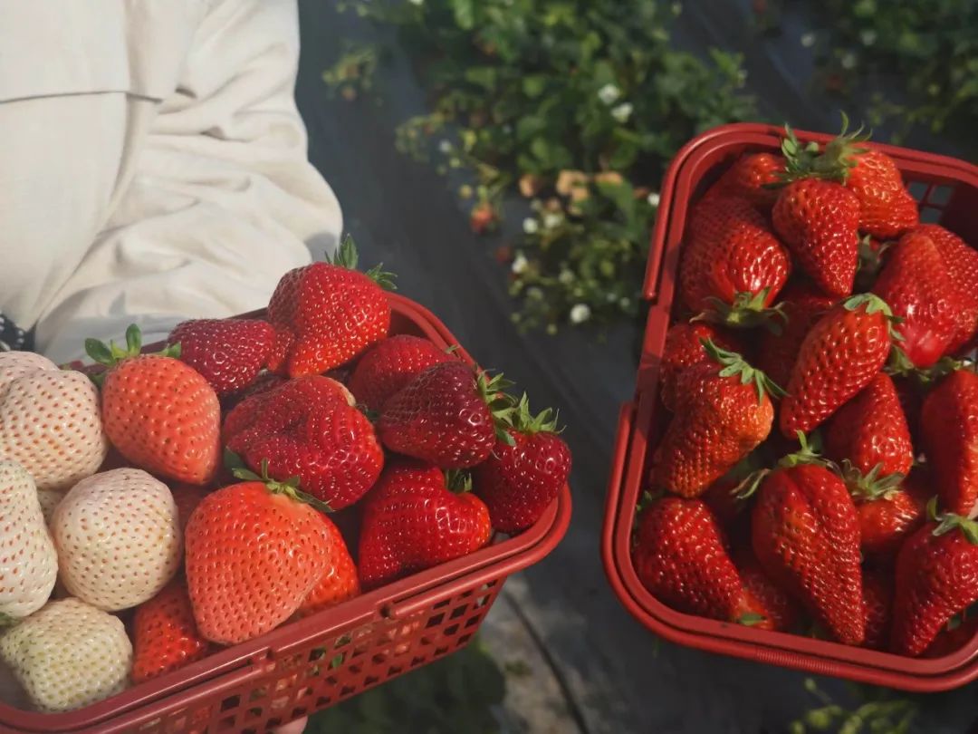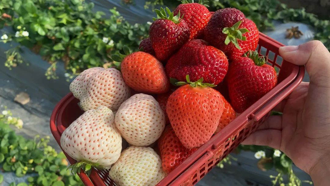 走进范台草莓采摘基地和骁润庄园的草莓大棚,一股浓郁的果香扑面而来,颗颗饱满的草莓像颗颗红宝石似的挂在枝头,在绿叶的映衬下显得格外诱人,听种植户大哥说:“除了红色草莓,还有五彩草莓”。