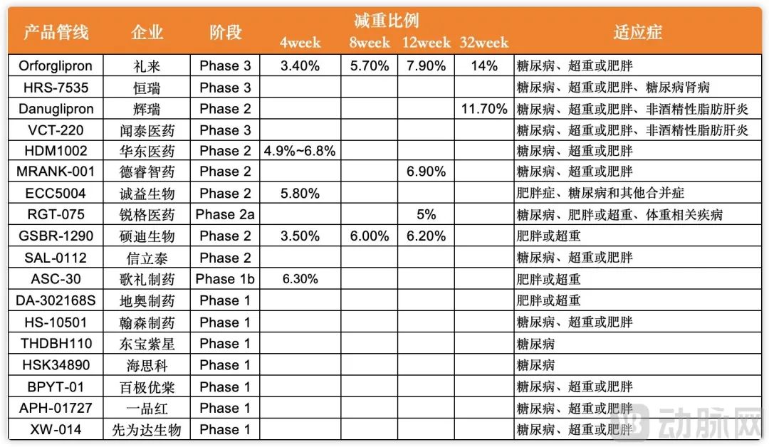 除了前文所提及的歌礼制药外,还有一众中国Biotech值得关注,他们管线在减重领域的临床数据已经和礼来相差无几。