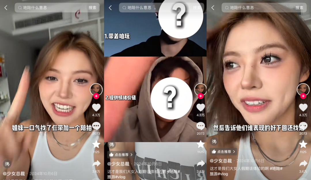 不过,做地陪也不像吃瓜群众想得那么简单,三分姿色、五分社交、再附赠七八九句导游词。实际工作中,地陪要及时发现客户心里缺什么、又想得到什么。提供情绪价值的本质是操纵情绪,能把地陪生意做长久的,大抵都是能拿捏人心人性的,甚至还能总结出集体症候。