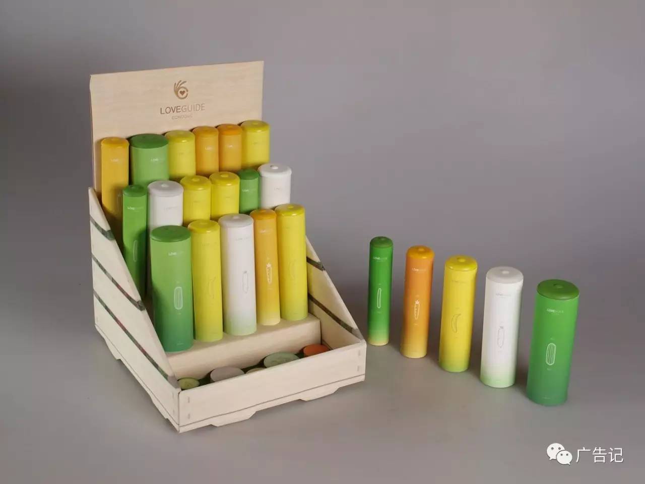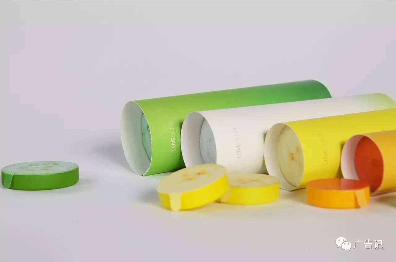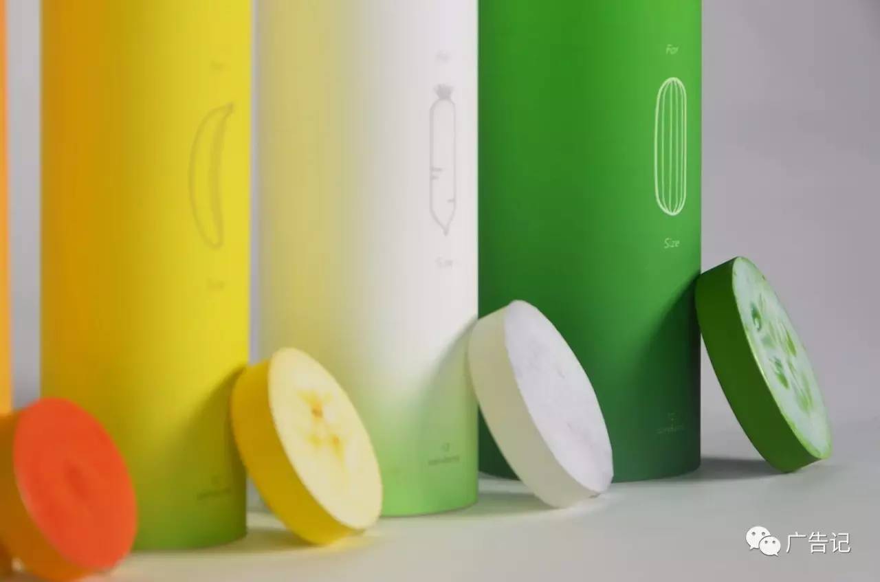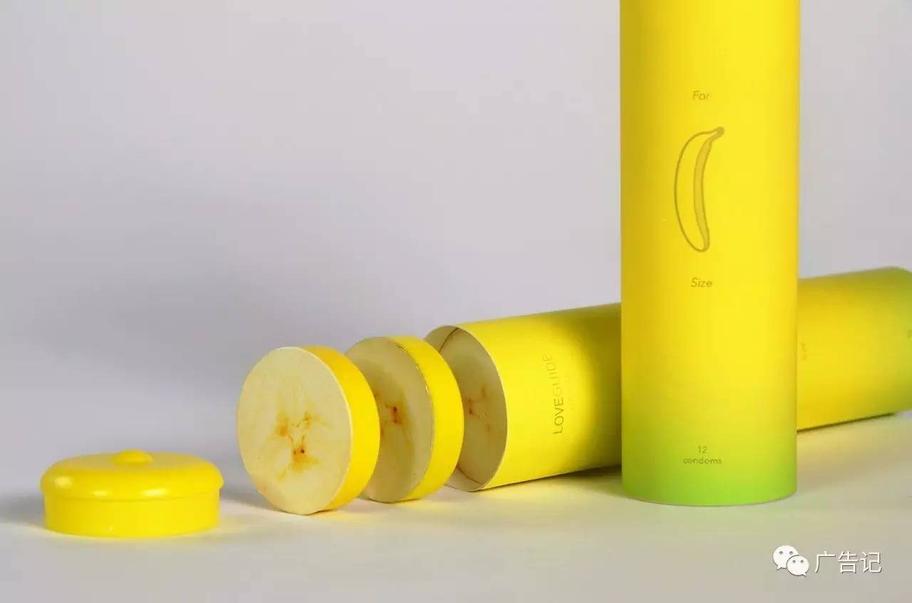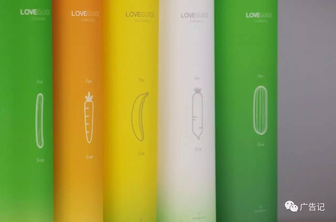 他根据不同的安全套直径,设计出了5种直径的包装盒,并分别用不同的蔬菜(水果)来展示,包括:西葫芦(直径50mm)、萝卜(45mm)、香蕉(40mm)、胡萝卜(35mm)、黄瓜(30mm)。