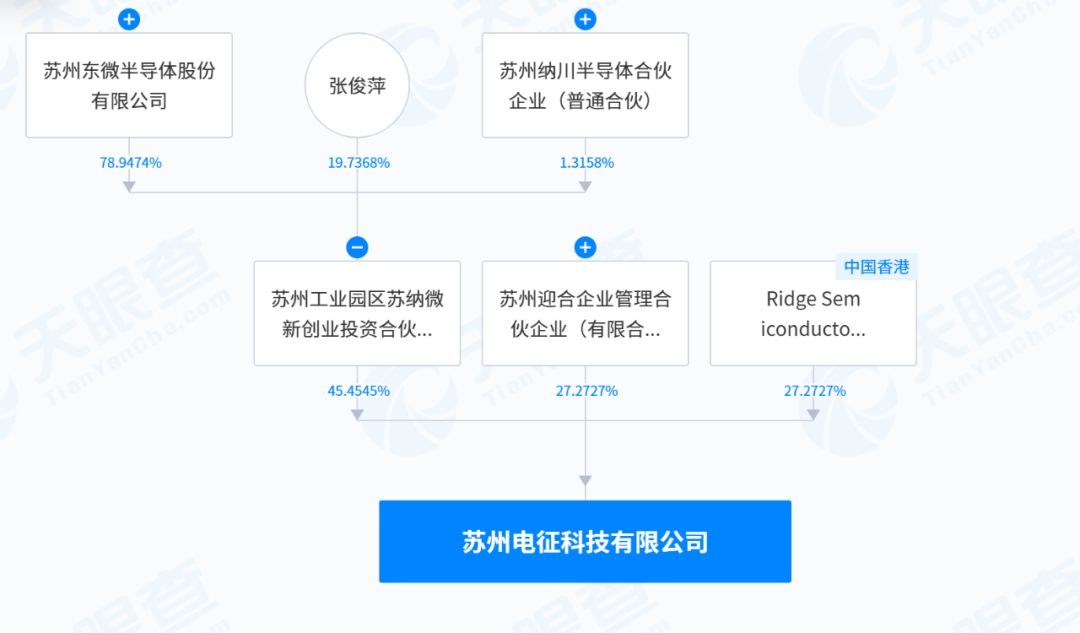 被收购之前,电征科技有3个股东,除了东微半导此次交易对手方——Ridge-Semiconductor Limited和苏州迎合企业管理合伙企业(有限合伙)(下称:苏州迎合),还有苏州工业园区苏纳微新创业投资合伙企业(有限合伙)(下称:苏纳微新),持有电征科技45.45%股权。