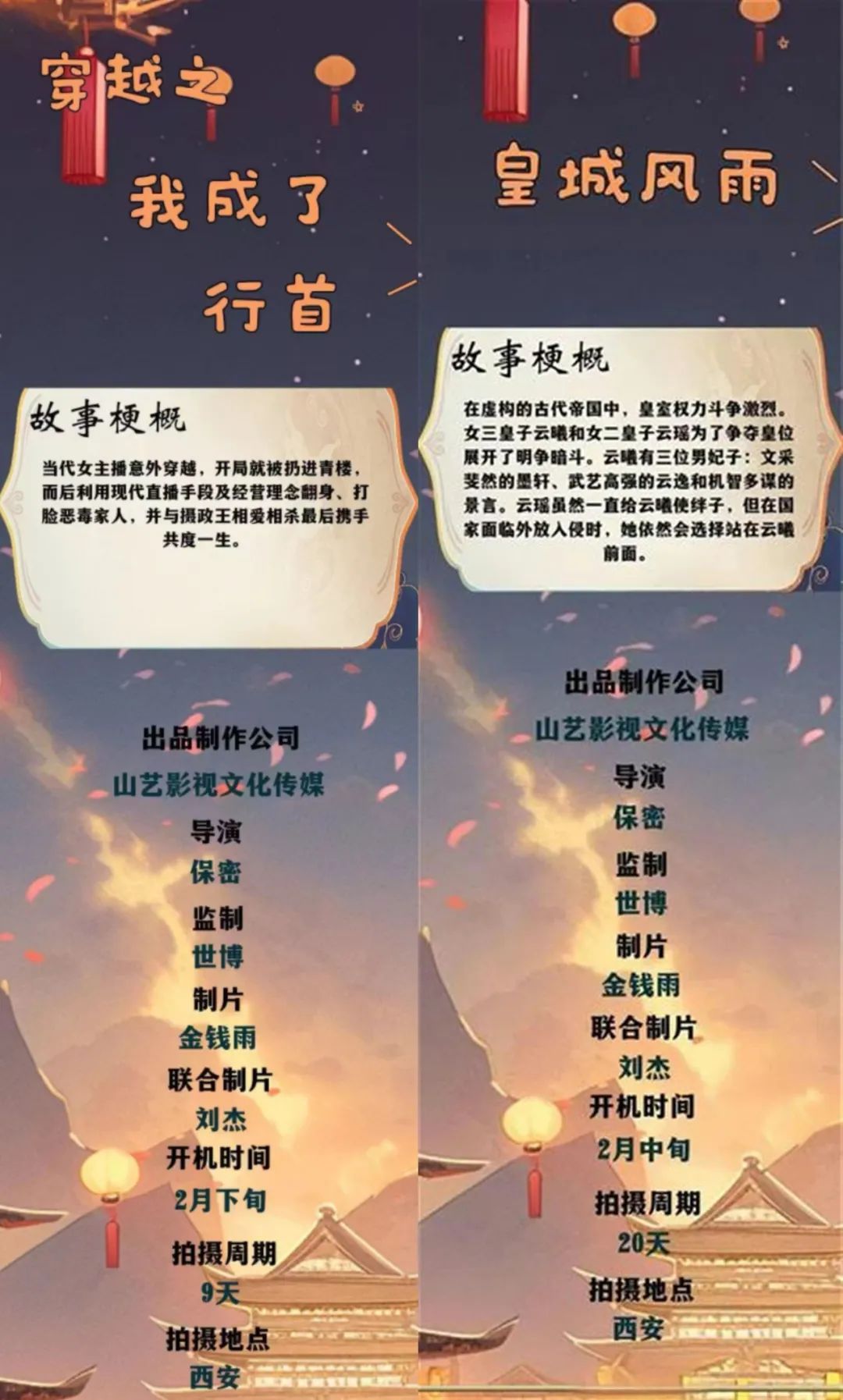 此后娱乐资本论也发起了调查,我们发现其招募海报上的演员统筹微信已设置不可添加,而组讯上的“山艺影视文化传媒”也与短剧出品公司毫无关系,这个剧组并非目前网友爆出的《穿越之我成了行首》,而是《皇城风雨》,但是两个剧组的主创人员名单和进组信息一模一样。