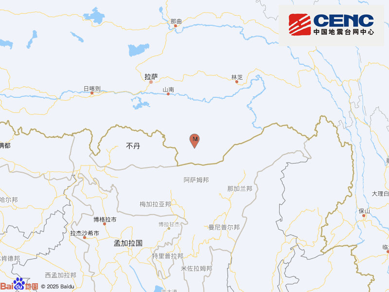西藏山南市错那市发生3.4级地震,震源深度10千米