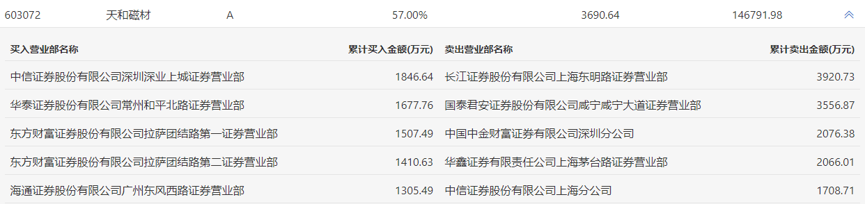 天和磁材2月28日涨5.62%,龙虎榜数据显示,上榜营业部席位全天成交2.11亿元,占当日总成交金额比例为14.36%。其中,买入金额为7748.02万元,卖出金额为1.33亿元,合计净卖出5580.69万元。