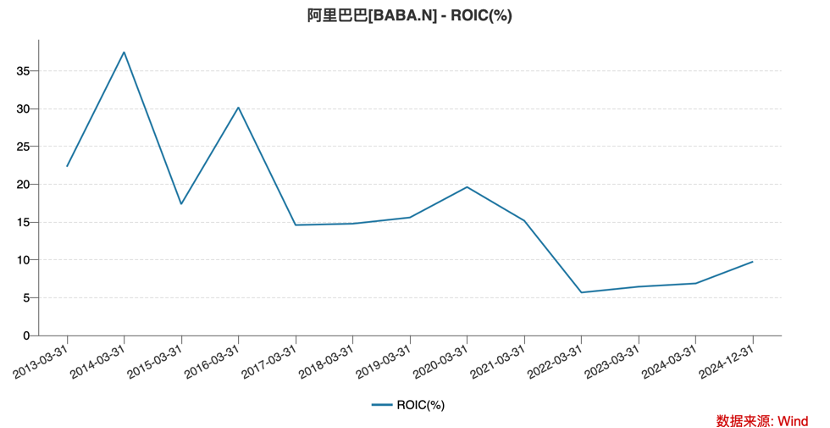 根据WIND统计2025财年前三个季度(2024自然年Q2-Q4),阿里ROIC跃升到了9.75%,全财年重回双位数应该没太大悬念。