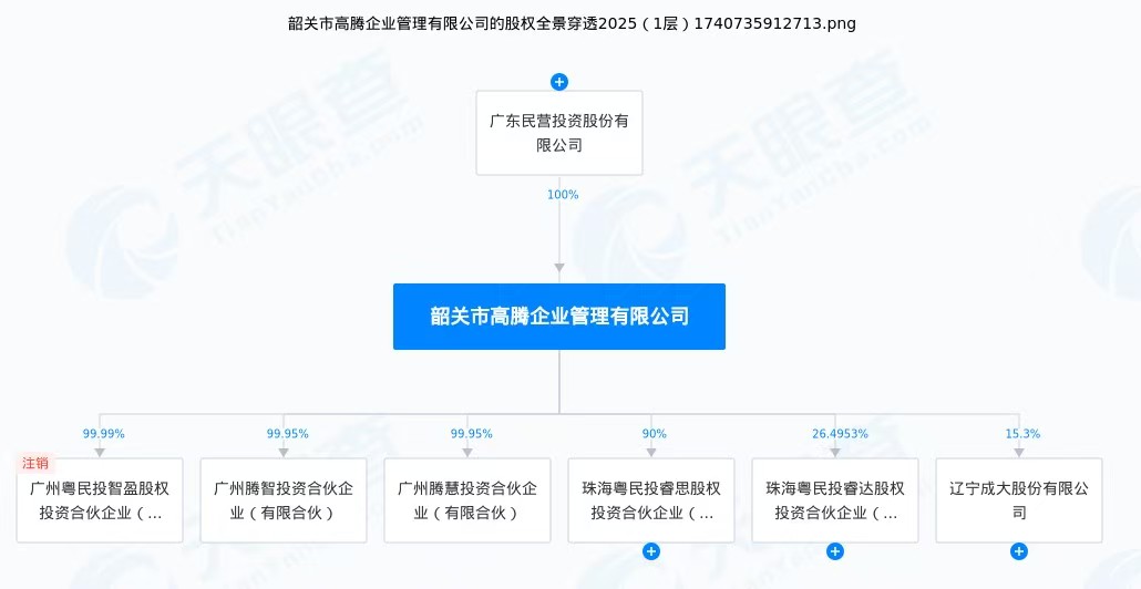 韶关高腾为广东民营投资股份有限公司(简称“粤民投”)全资子公司。据官网介绍,粤民投于2016年9月注册登记,实缴资本金160亿元,首期股东包括美的集团、碧桂园、立白、海天等16家,主要投资新能源、生命科学、农业现代化、大消费、高端制造等实业领域。