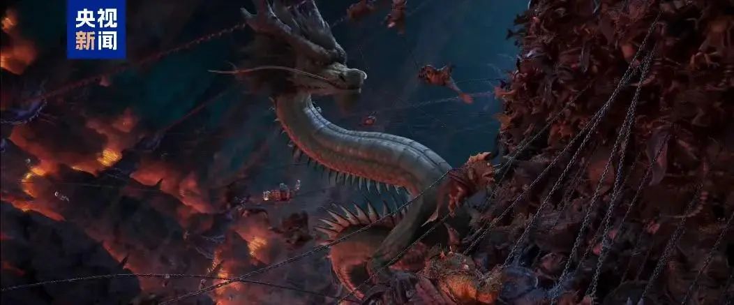 海底妖兽和龙族身上的铁链(图源:央视新闻视频截图)