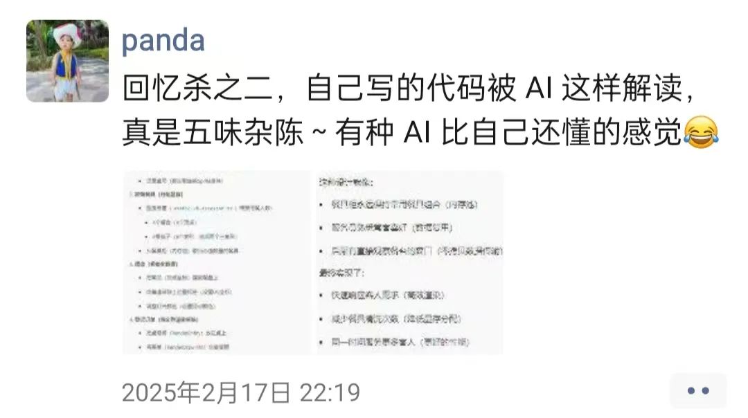 一日偶然间,技术讨论群里一位开发者使用DeepSeek理解Cocos的一个模块设计,恰好这个模块就是我写的。当我目睹DeepSeek用既准确又文艺的手法,讲解此模块设计时,我不由得感叹:DeepSeek怎么比我自己更理解这段代码啊?!