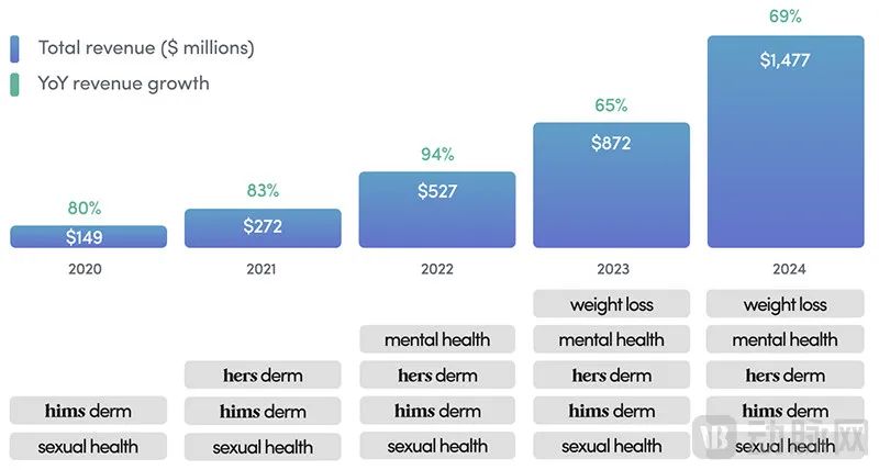 近年Hims &Hers营收增长喜人