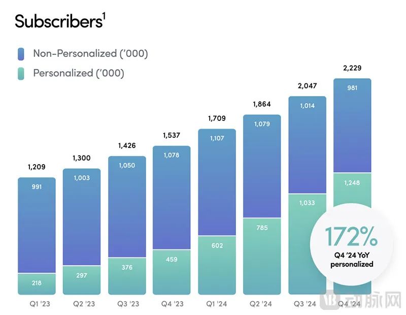 在其年报中,个性化用药的用户数量在近年来突飞猛进,从2023年第一季度仅占总用户数量18%的比例达到了2024年第四季度的56%之多。