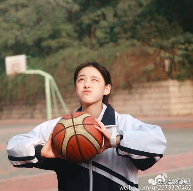 她因为一组穿校服打篮球的这张照片出名,是不是觉得并没有很惊艳,但是中学生长成这样的真的很少。