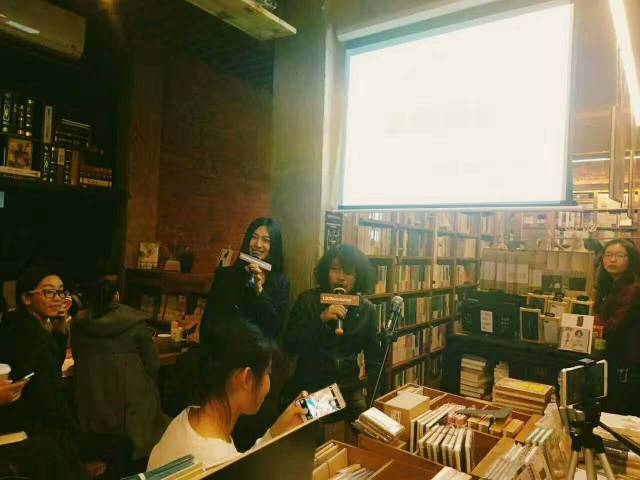 向前走两步,愣在那里看了一分钟,然后跟明哥苗苗姐他们打了声招呼,继续往前走两步,我去,还没合张影呢/哭/哭,看见有家书店,进去逛,19:40,“哥你在哪里呢,再不来就没位置坐了”(我妹发来信息),唉 白踩点了,最后还得靠边坐了。