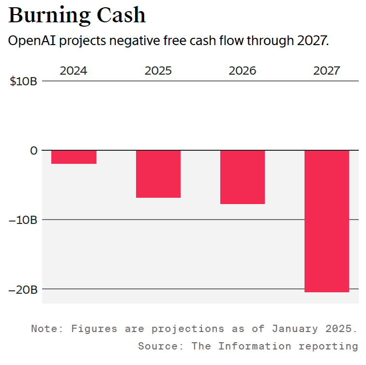 当然,这些都将继续利好英伟达,Stargate数据中 就将需要数 万个GPU。但是如果OpenAI一直是吞金兽,却无法产生足够有价值的现金流,那也会有大麻烦。
