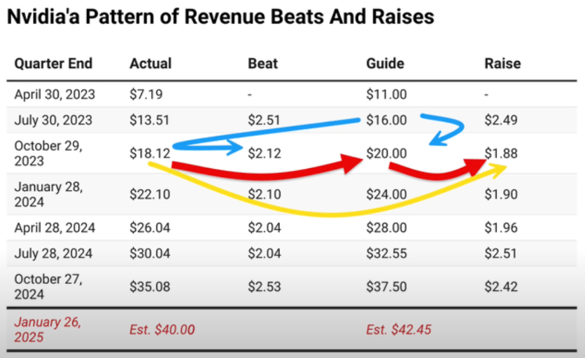 英伟达就像班里那个最好的学生,每次考试都能超预期,于是评判他的标准跳出了绝对分的逻辑,更在意他能超过预期多少。