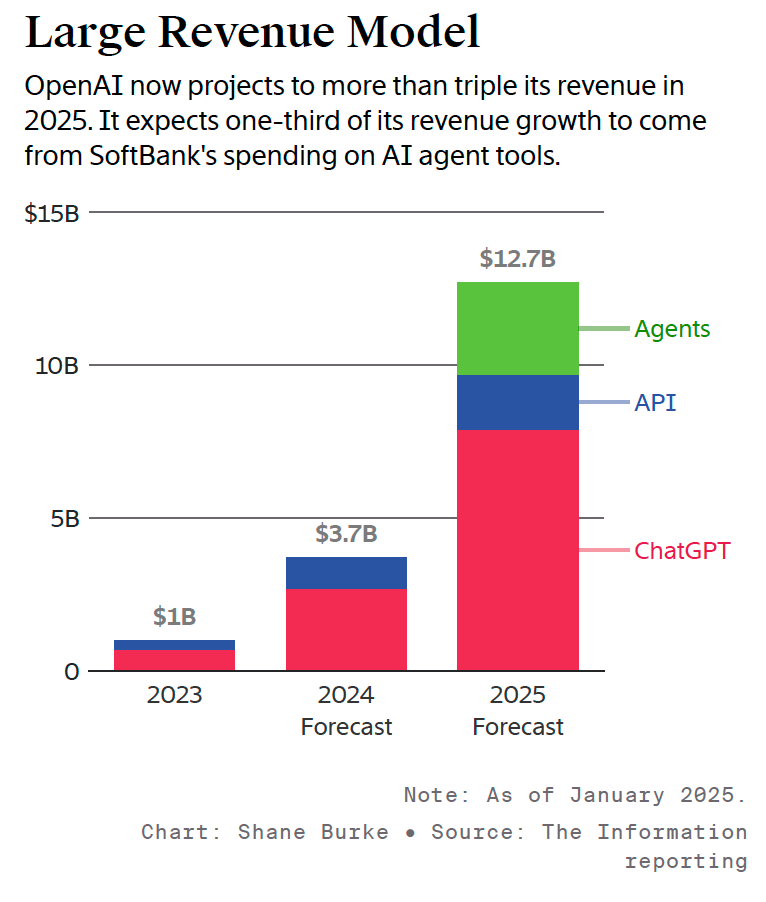 OpenAI今年已经向投资者透露,一方面预计今年收 将从37亿美元,增 超过125亿美元,实现三倍以上的增 ;但同时烧钱速度仍然会加快,在Stargate建设完成之后实现盈利。