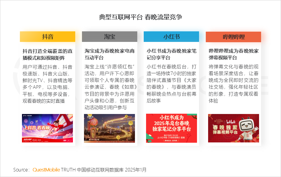 1.8 各平台围绕自身定位展开差异化营销,争夺场景流量;央视春晚作为全民性的超级流量池,阿里巴巴、抖音、小红书和哔哩哔哩通过不同玩法,加深用户对其品牌形象的认知