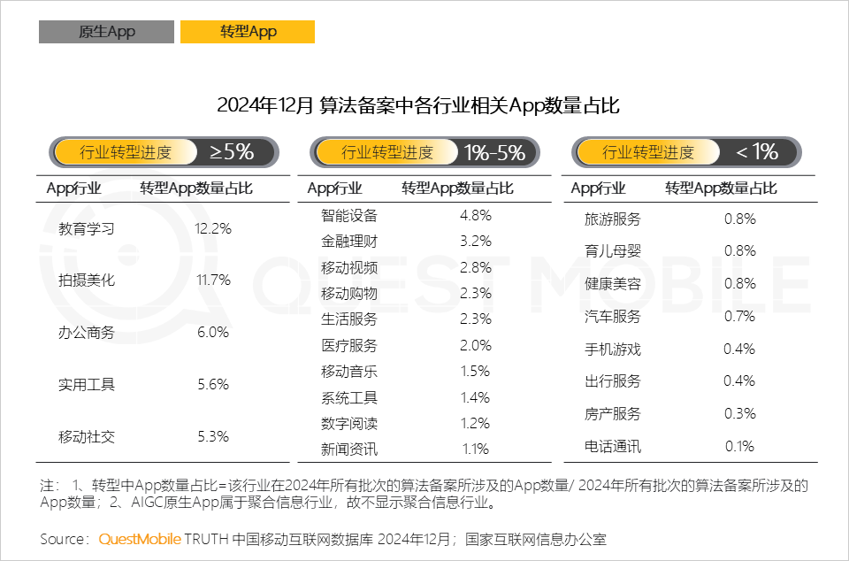 QuestMobile数据显示,规模在亿级以上的App中有70%正在“转型路上”。