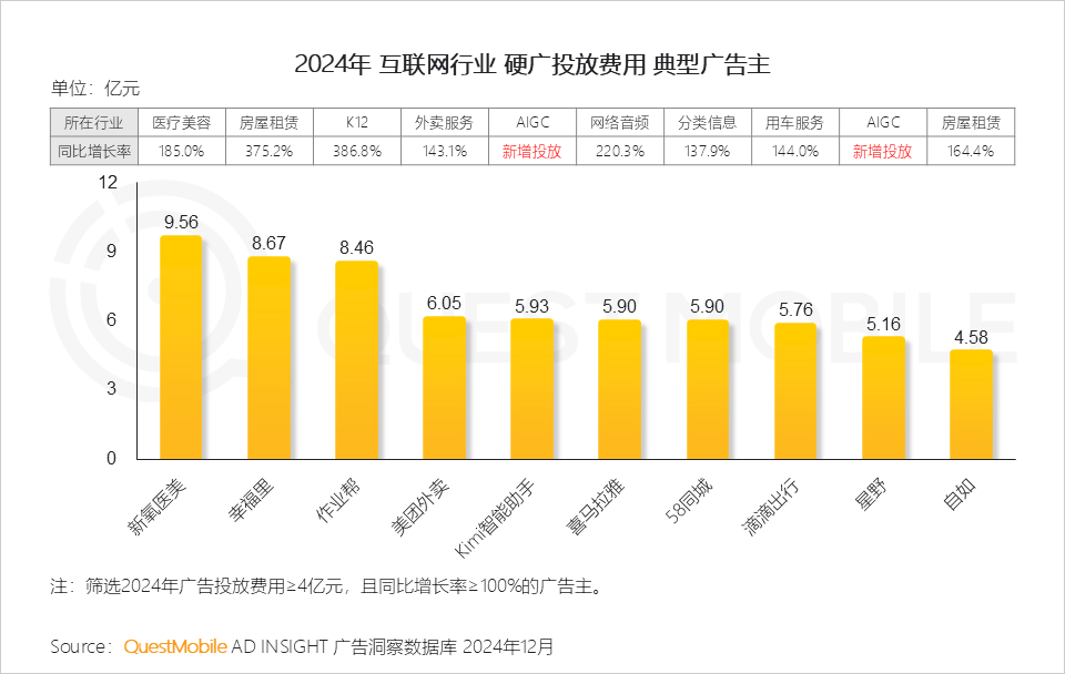 VI. 互联网行业以头部电商集团投放领跑,AIGC行业规模进入前十之列