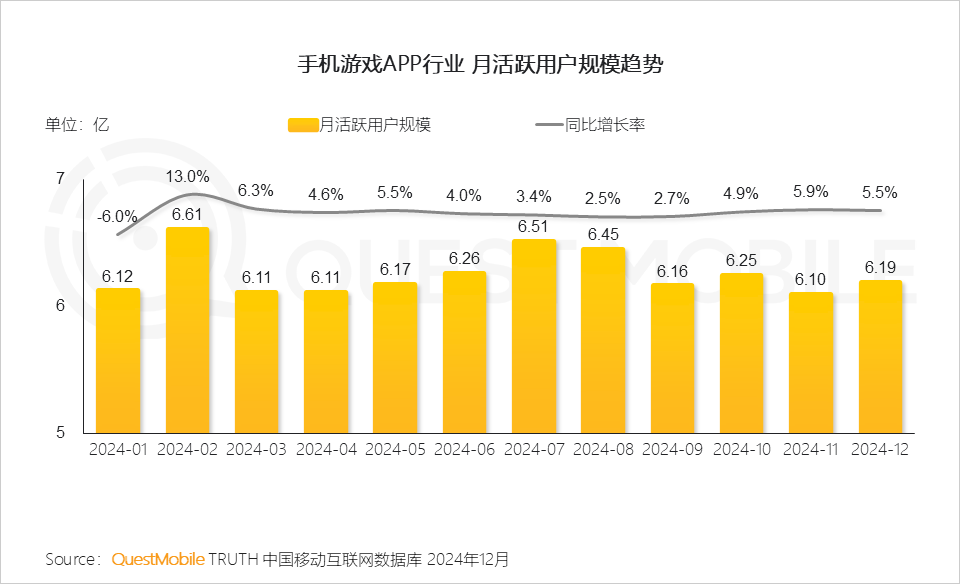 I. 游戏版号常态化发放、新游多元内容供给等共同支撑手机游戏APP行业流量稳定,全年月活跃用户规模维持在6亿以上