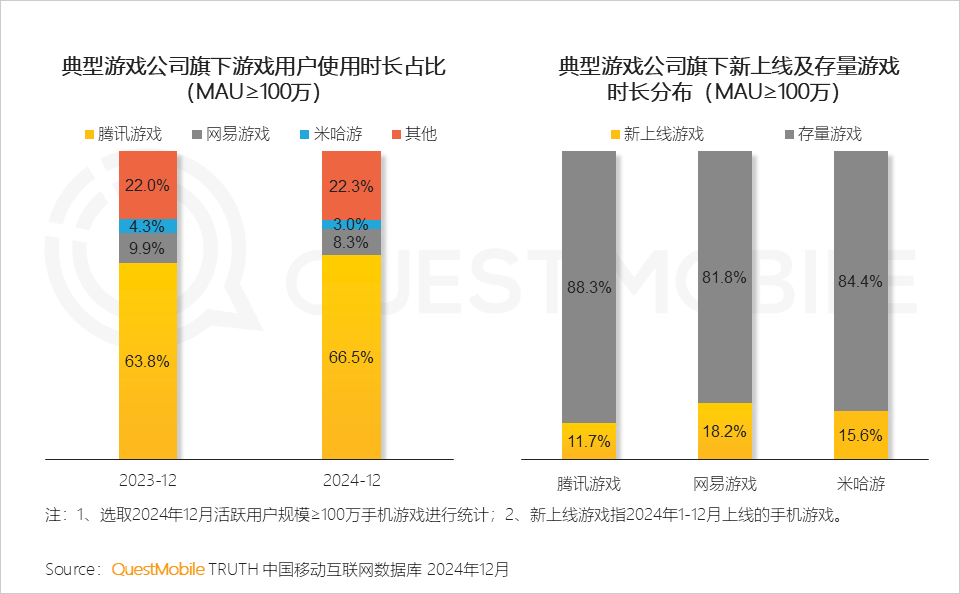 II. 头部游戏大厂占据用户”注意力“高地,新上线游戏持续巩固市场份额