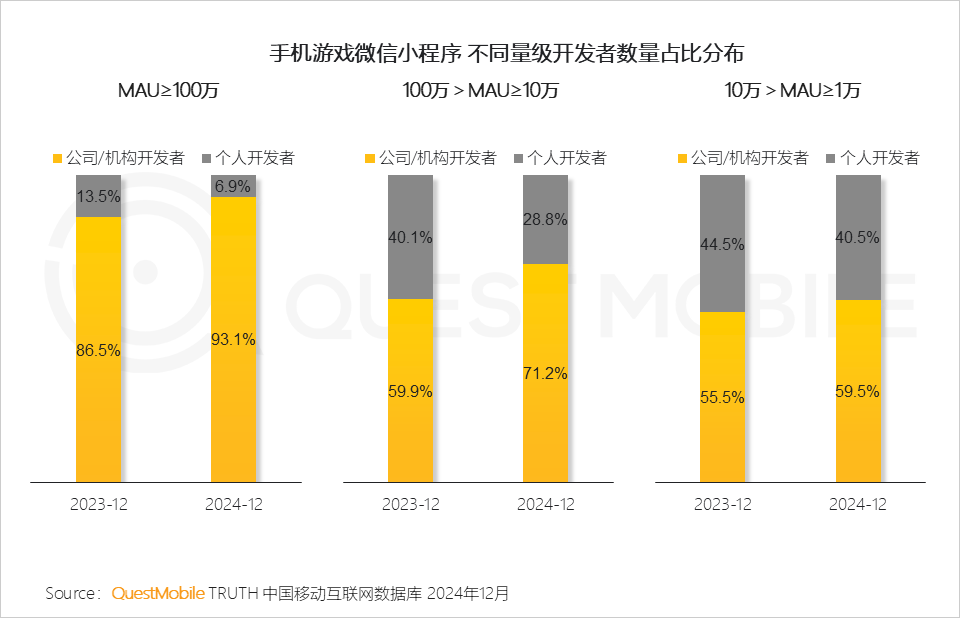 V. 小游戏开发愈加成熟,更多公司及机构加入,个人开发者占比降低
