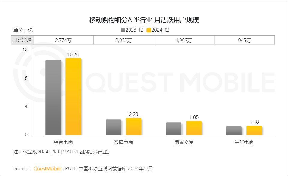 I. 线上购物平台用户规模持续增长,综合电商、数码电商行业流量同比增长超过2000万