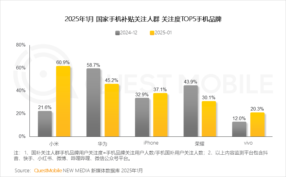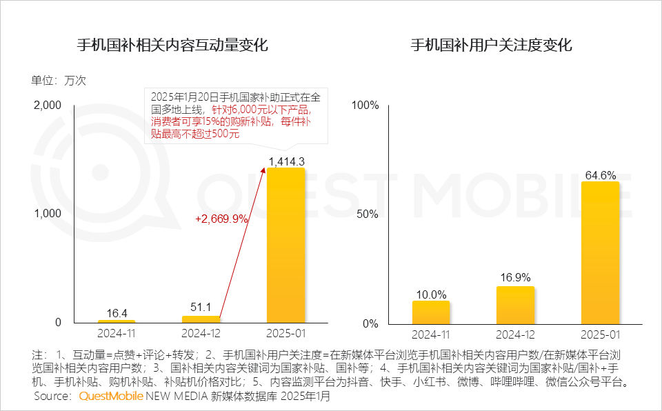 VI. 手机国补政策发布后,各品牌迅速响应,通过线上线下渠道开展不同幅度补贴,在社媒引发广泛关注