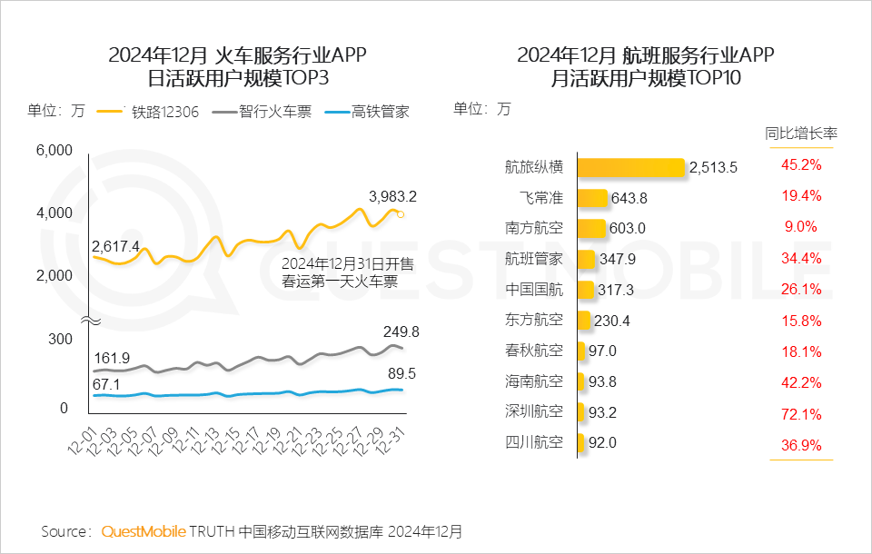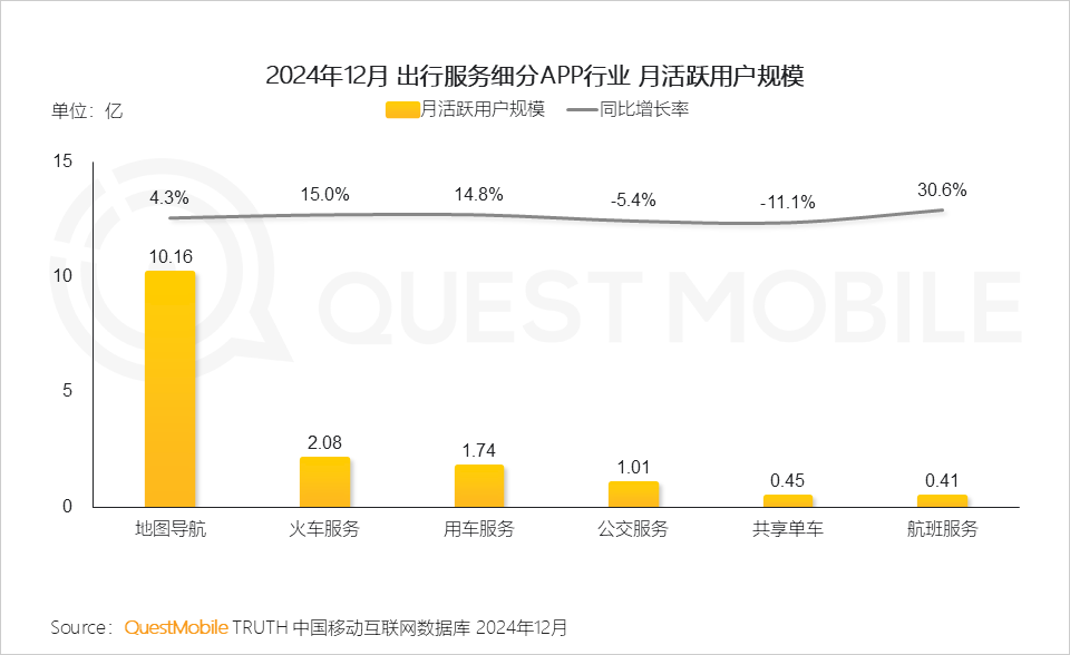 4.1 2024年年底,用户出行需求的集中释放及出行方式的多样化,带动出行服务行业用户规模和时长进一步增长