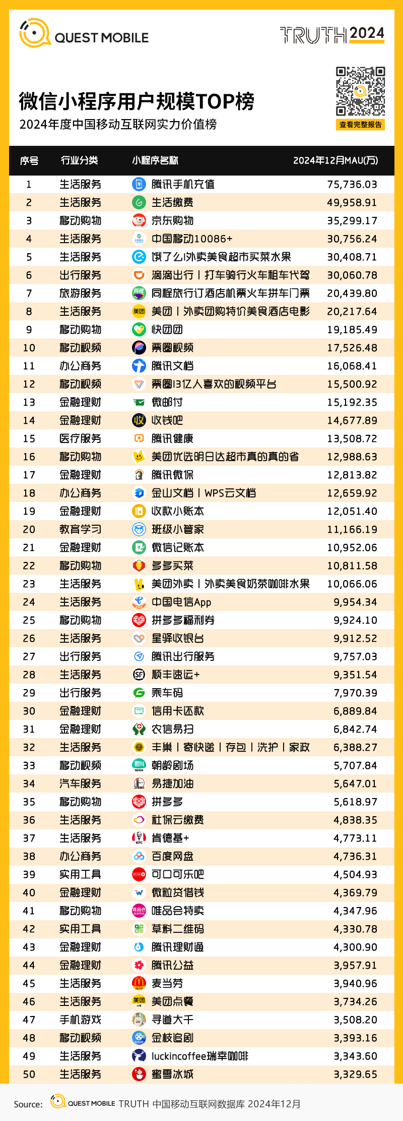 3、微信小程序用户规模TOP榜