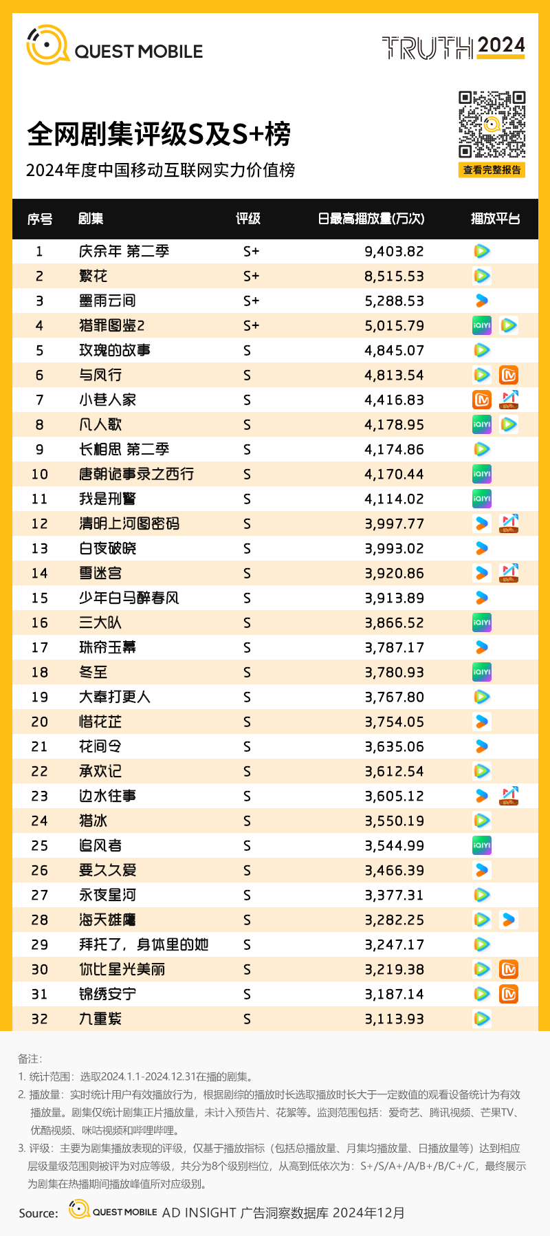 8、全网剧集评级S及S+榜