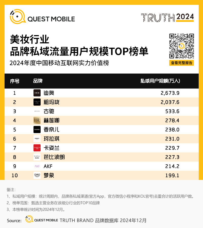 11、美妆行业品牌私域流量用户规模TOP榜单