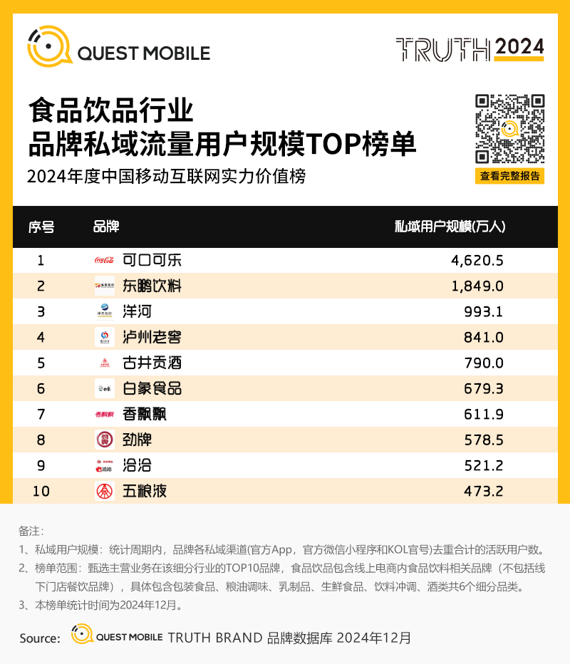 12、食品饮品行业品牌私域流量用户规模TOP榜单