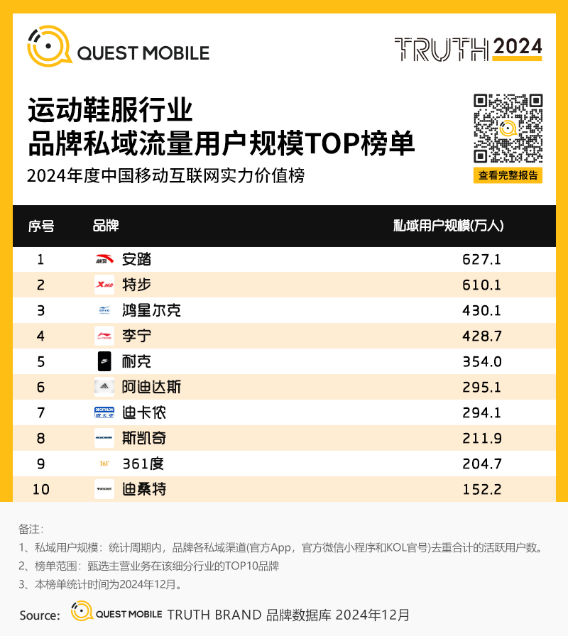13、运动鞋服行业品牌私域流量用户规模TOP榜单