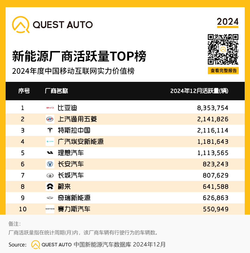 15、新能源厂商活跃量TOP榜