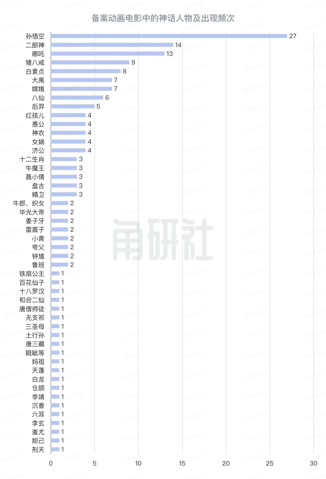 那么,这十年来备案了哪些神话人物IP的动画电影呢?角研社对这159部作品做了统计,得出了这三个信息: