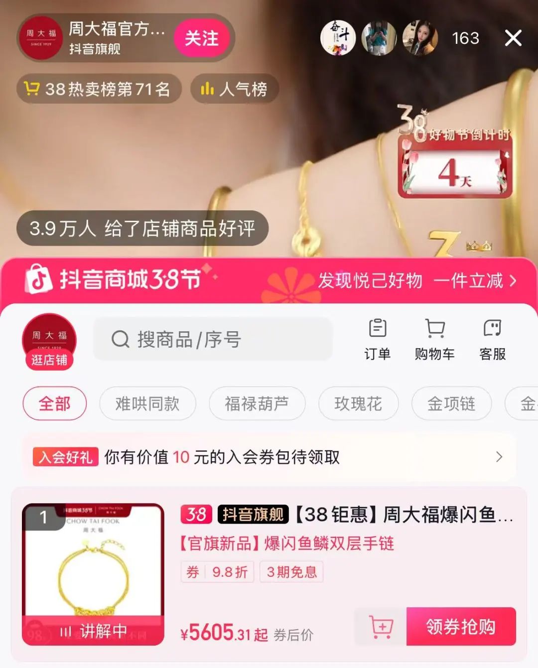 一方面,周大福、老凤祥等头部品牌持续关店,近三个月累计关掉了超300家。另一方面,直播间成为了黄金销售的救命稻草。