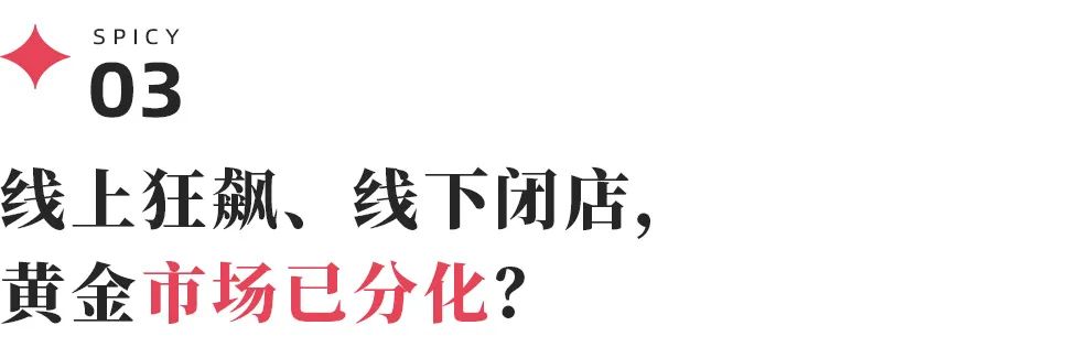 无论如何,当年轻人将黄金视为“可穿戴的定期存款”,传统金店的工艺溢价逻辑便一定程度失效,周大福们关闭300家门店押注线上时,黄金市场已经不只是渠道的转换,或许,卖黄金的方式也要变了。