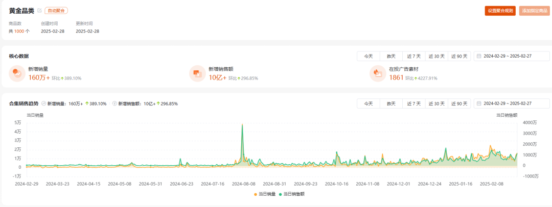 据了解,线上黄金交易平台的交易量年增长率高达87%,直播带货在金饰销售中的比重也从3%跃升至22%;有米云数据也显示,黄金品类近一年新增销量超160万,新增销售额超10亿,环比增长近300%,行业已到转型临界点。
