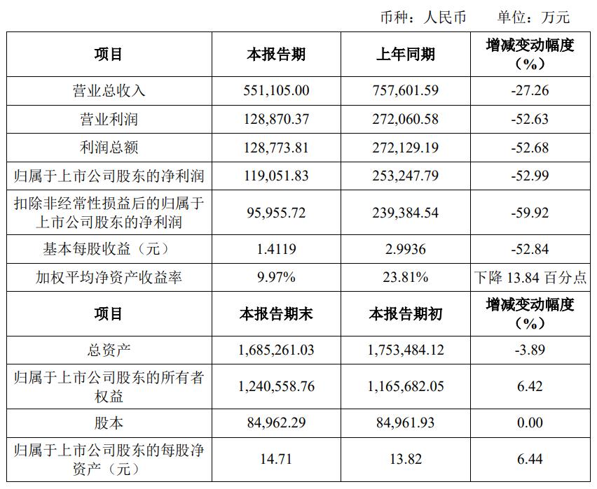 业绩方面,据紫光国微《2024年度业绩快报》显示,公司营业总收入55.11亿元,同比减少27.26%;归属净利润11.91亿元,同比减少52.99%;扣非净利润9.60亿元,同比减少59.92%。