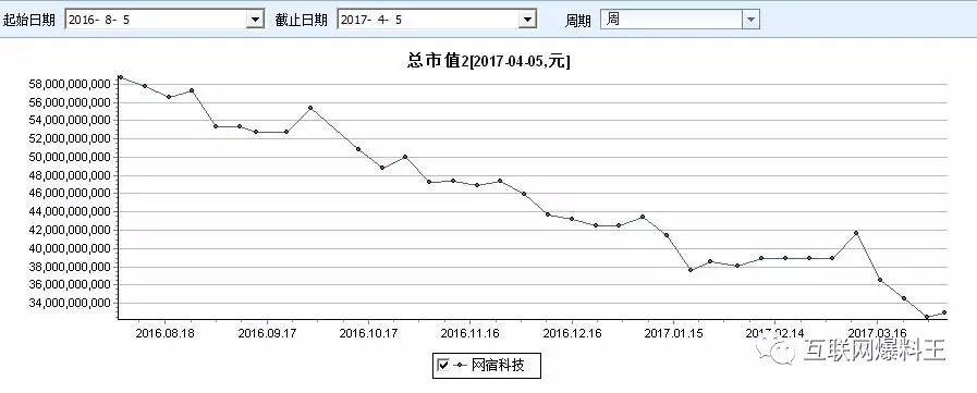 2017年3月30日,也就是阿里云再次宣布大幅降价后,网宿股价创下年内新低,收盘报价40.23元。公司市值也从去年7月的580亿左右,跌到320多亿。