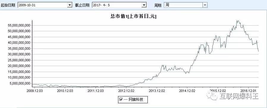 网宿科技上市以来的市值走势图,数据来源Wind数据库