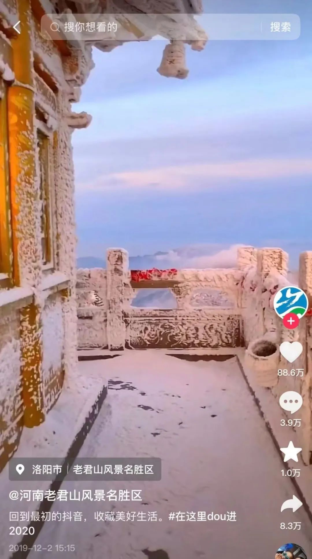 老君山雪景视频在抖音爆火。图 / 讲述者提供